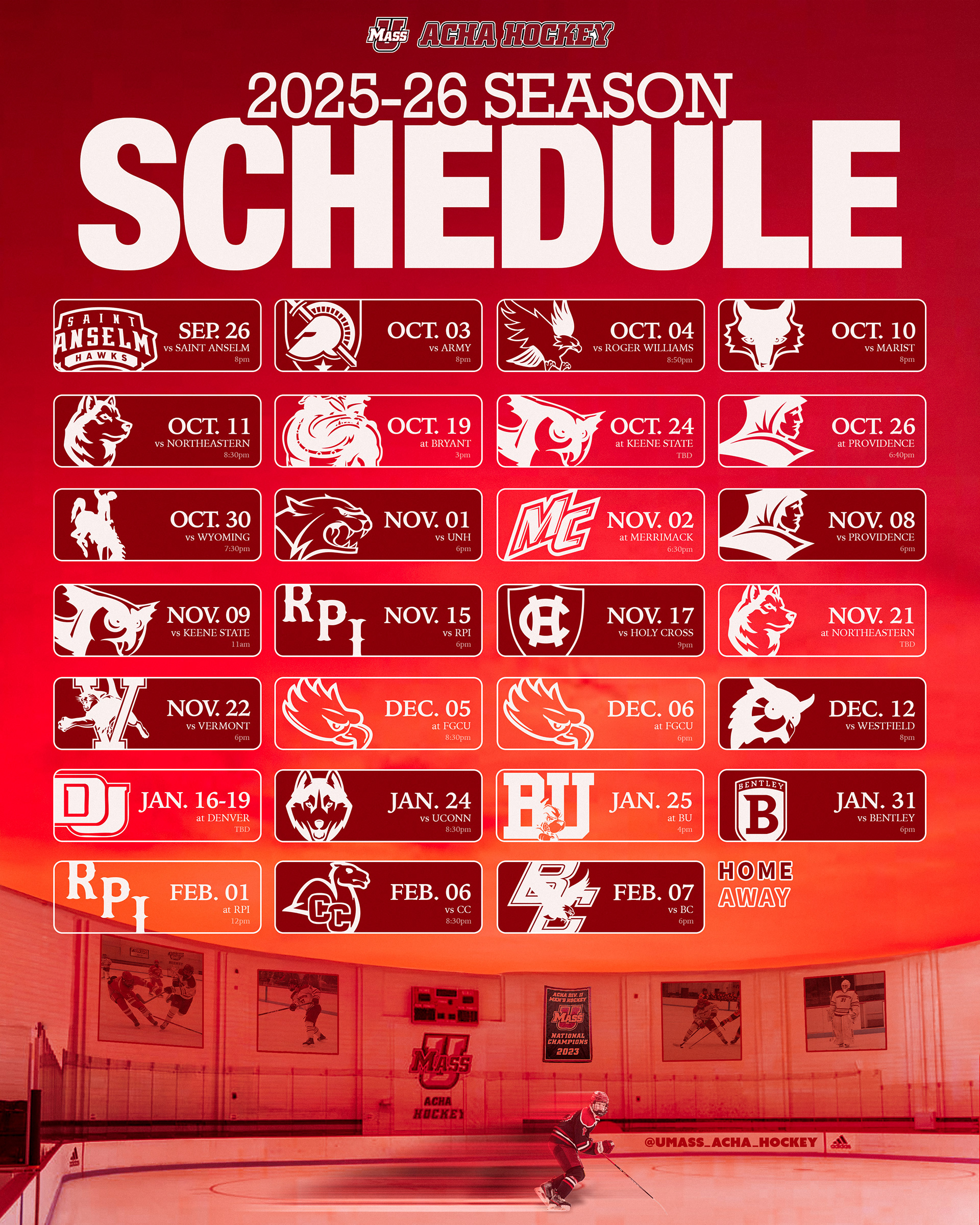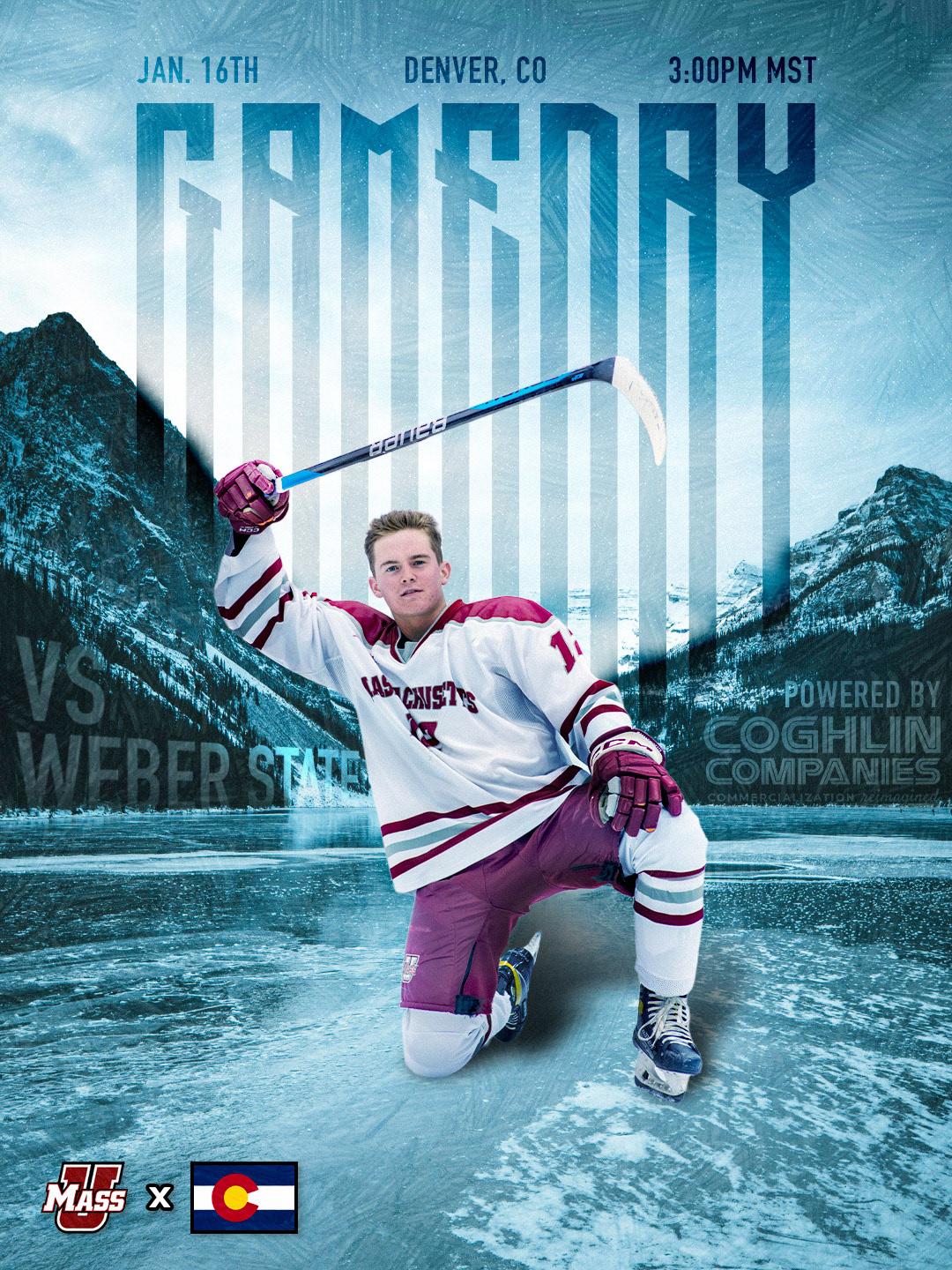 I am experienced in creating sports graphics with recent work for UMass Club Hockey and Saint John's Hockey
